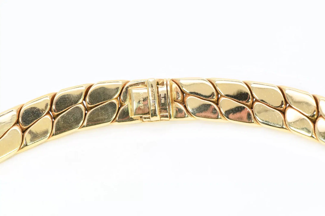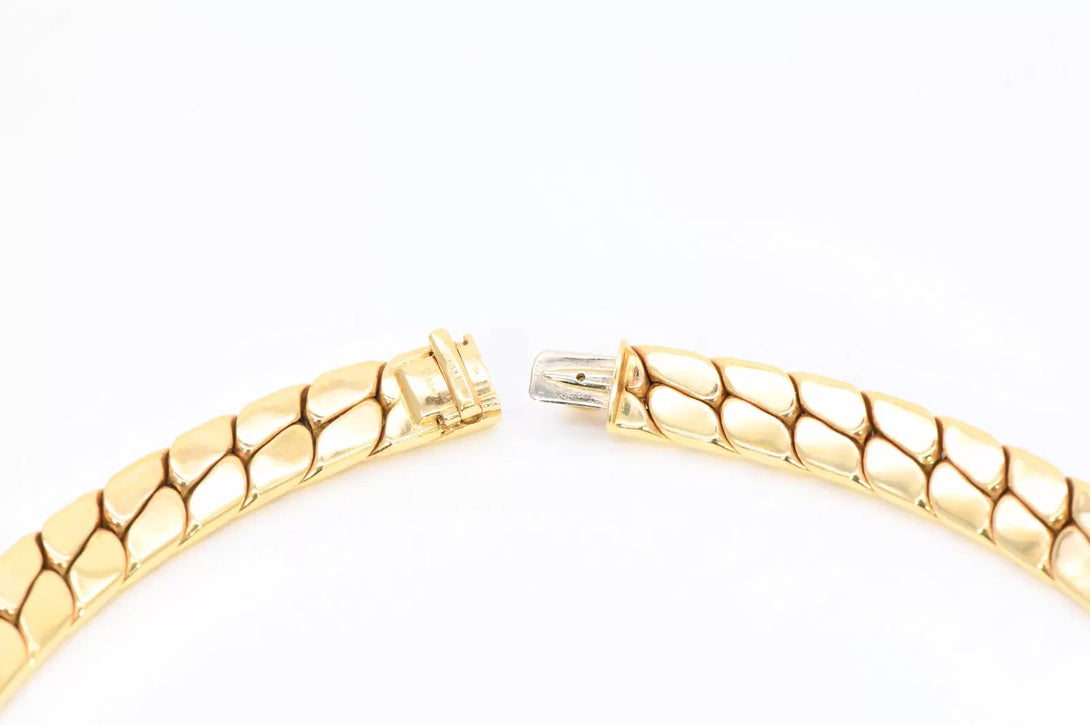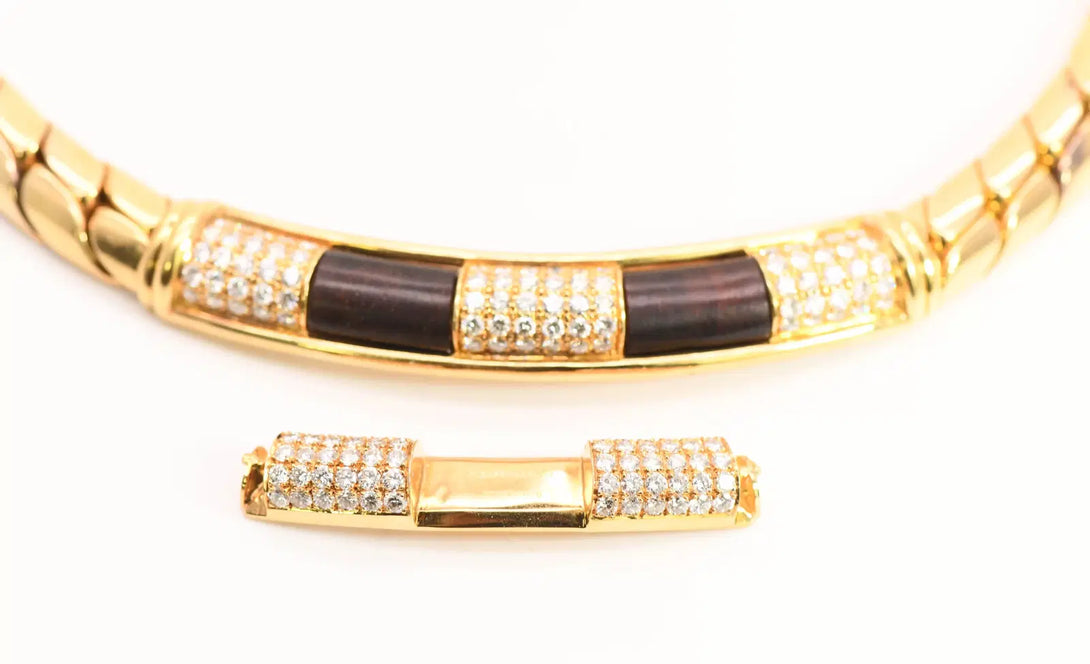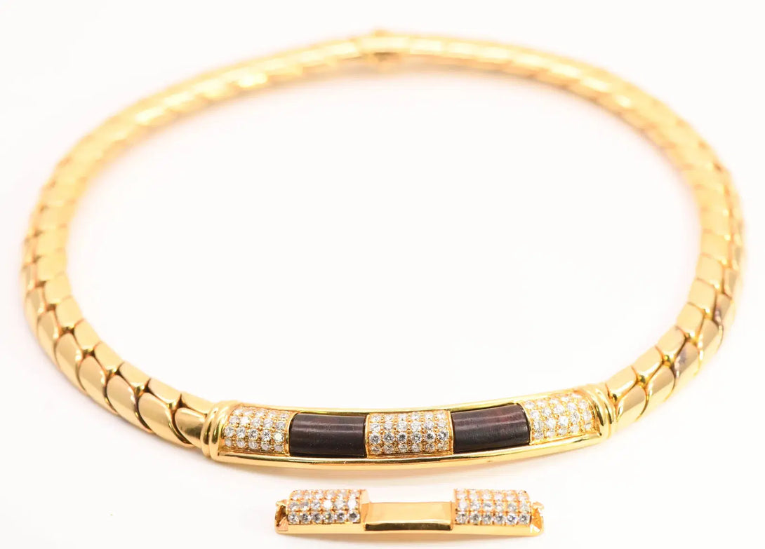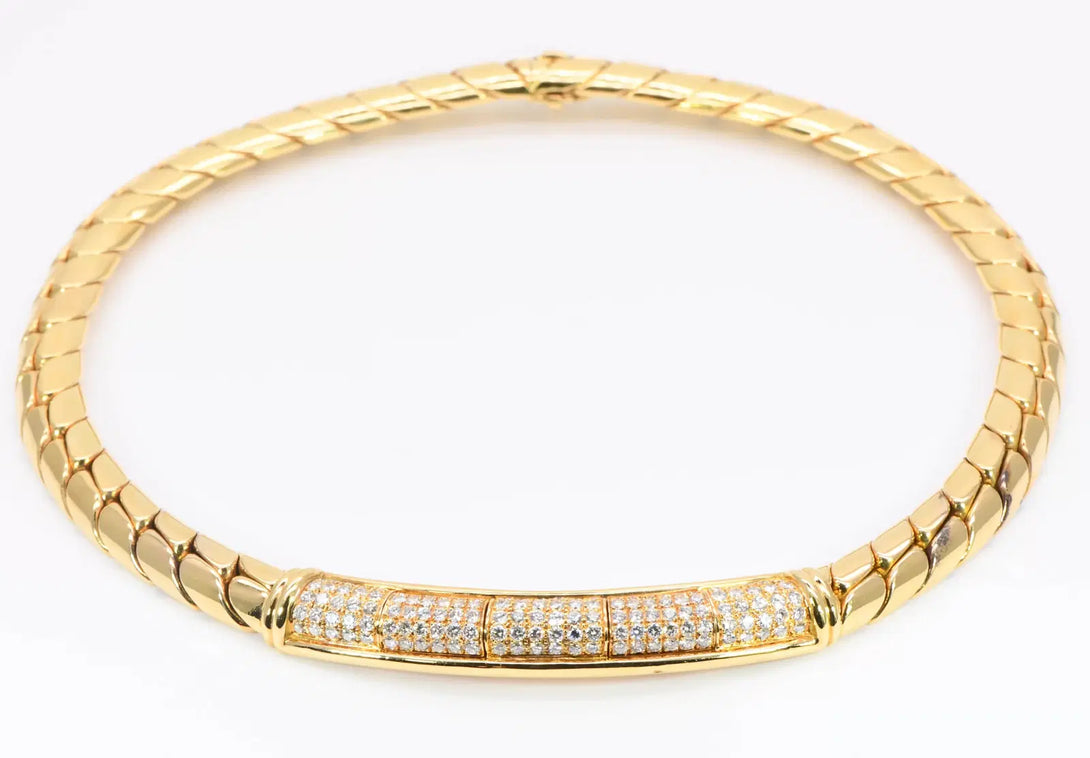 The aesthetic of the Boucheron house combines exotic motif jewellery with jewellery consisting of simple but innovative lines. This Boucheron 18k Yellow Gold and Diamond Pave Necklace is of minimalistic design, appropriate for both day and evening wear.