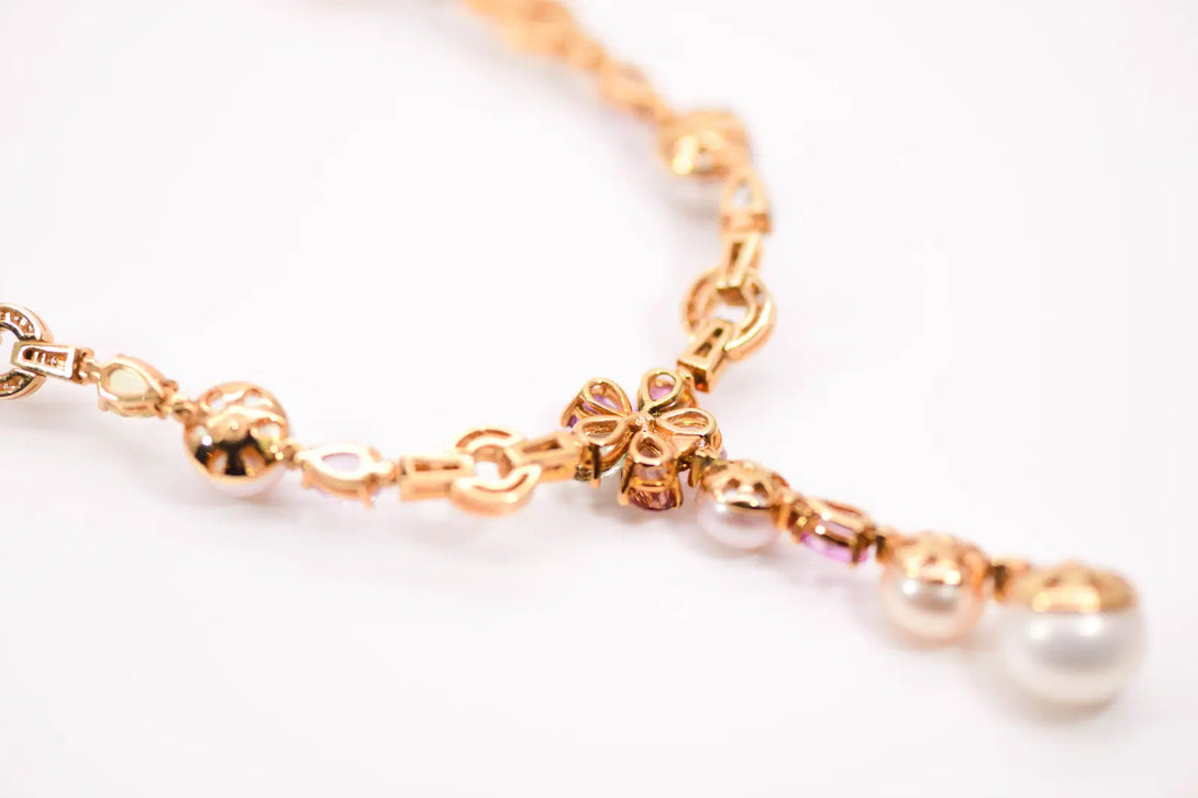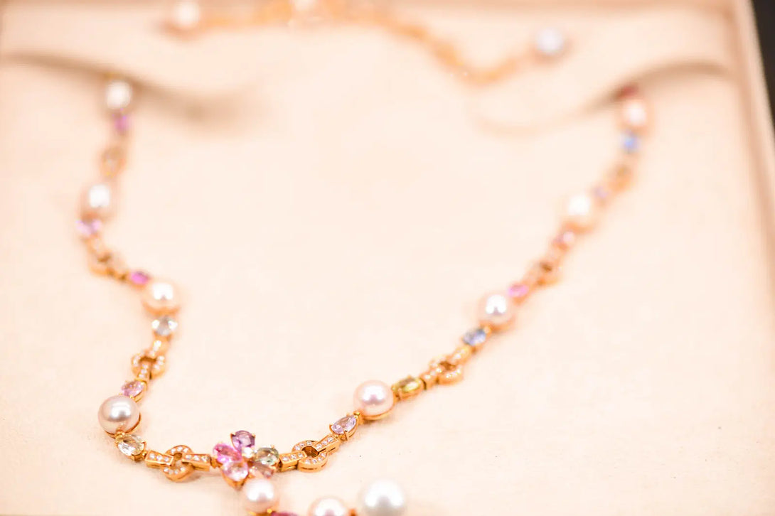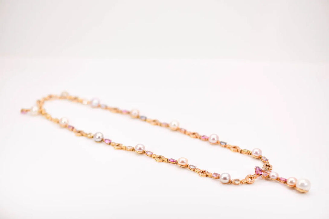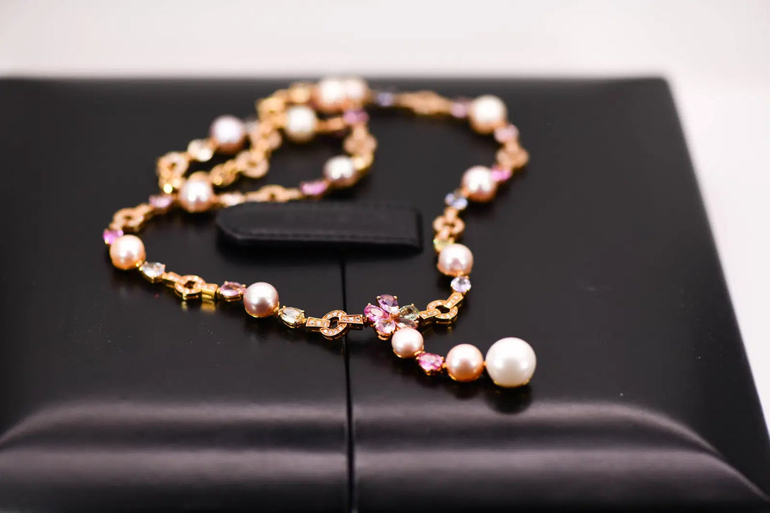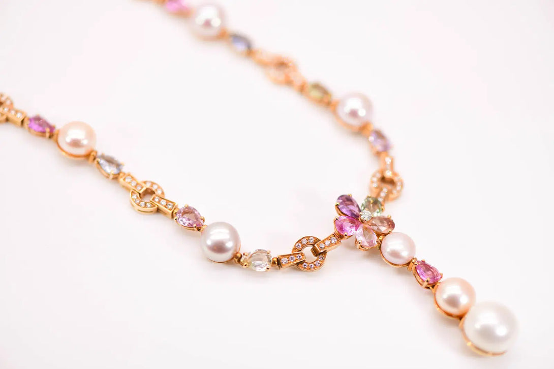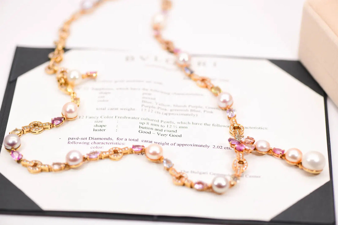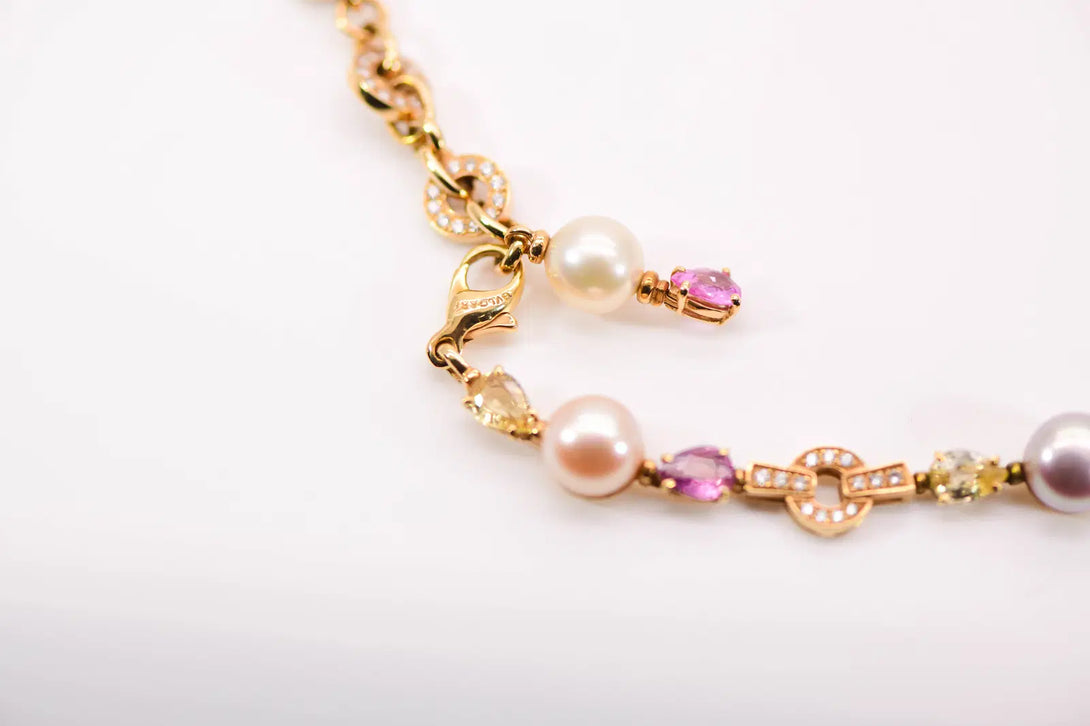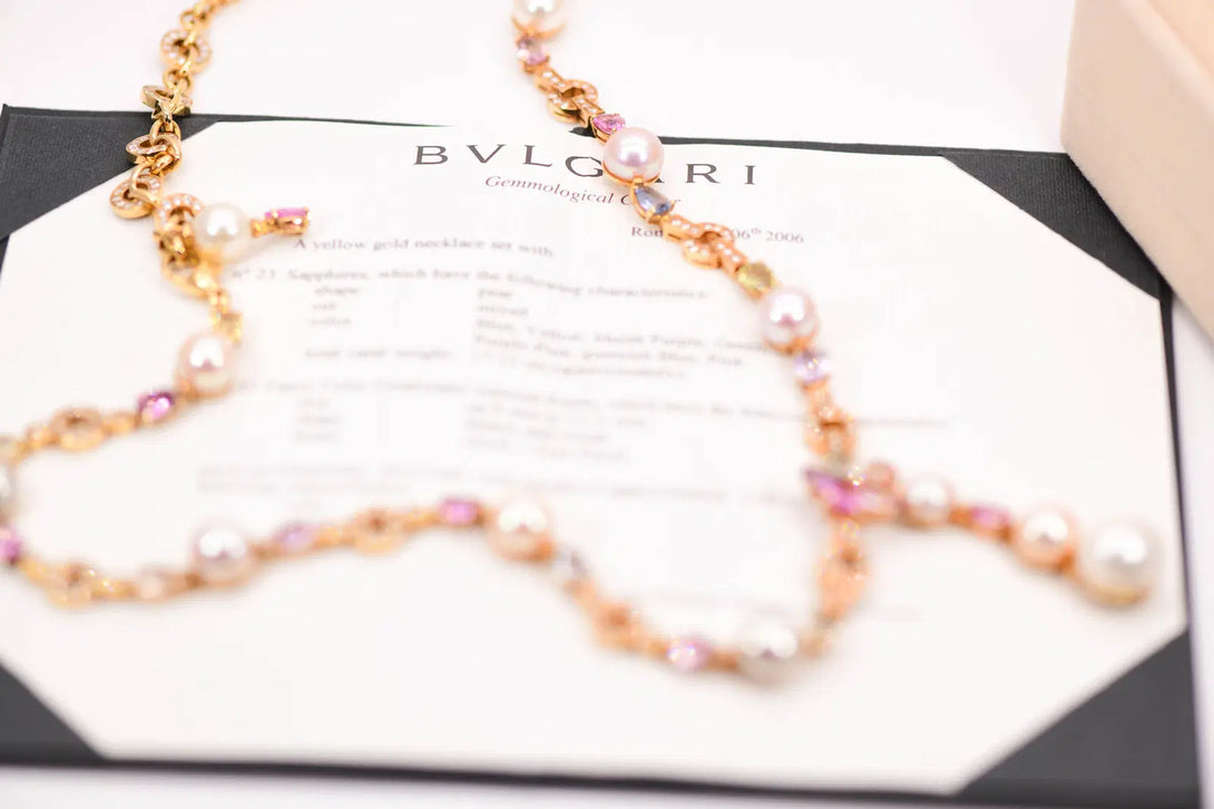 Bvlgari Allegra 18k Yellow Gold Sapphires and Pearl Large Necklace