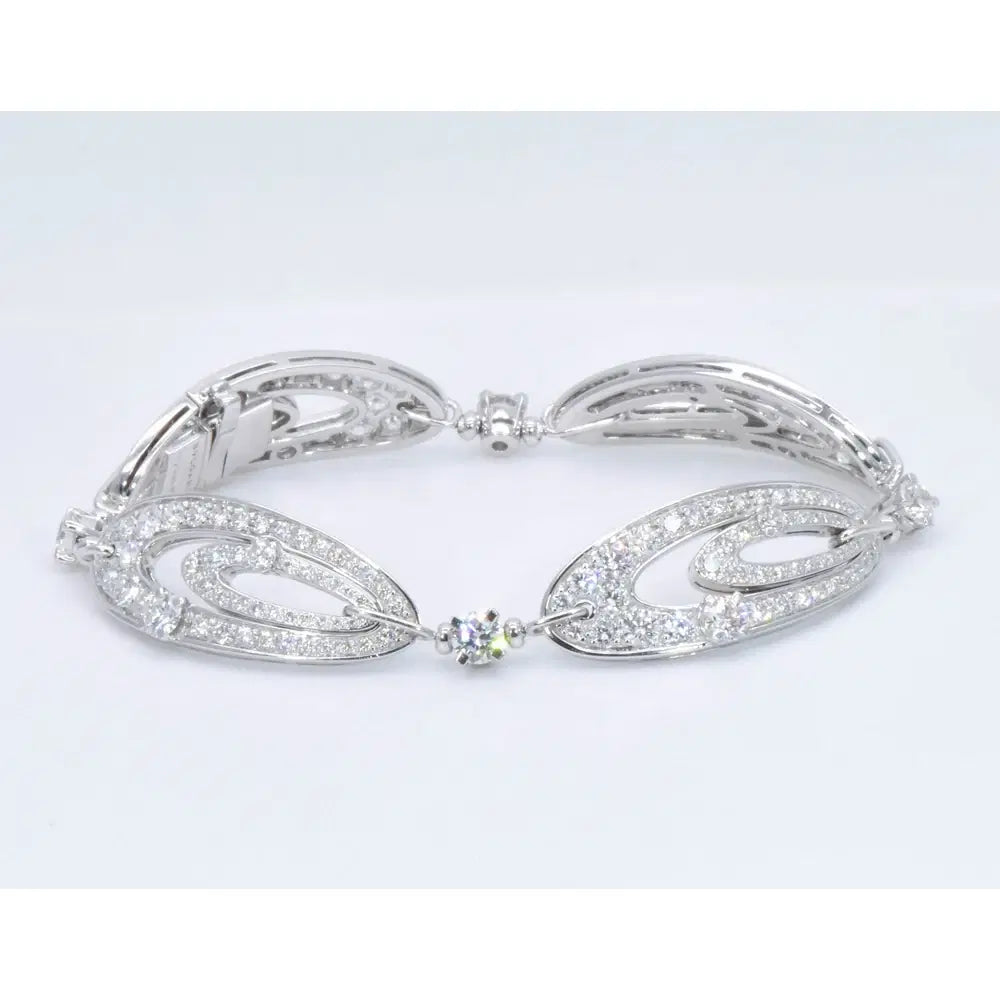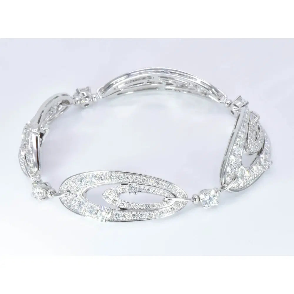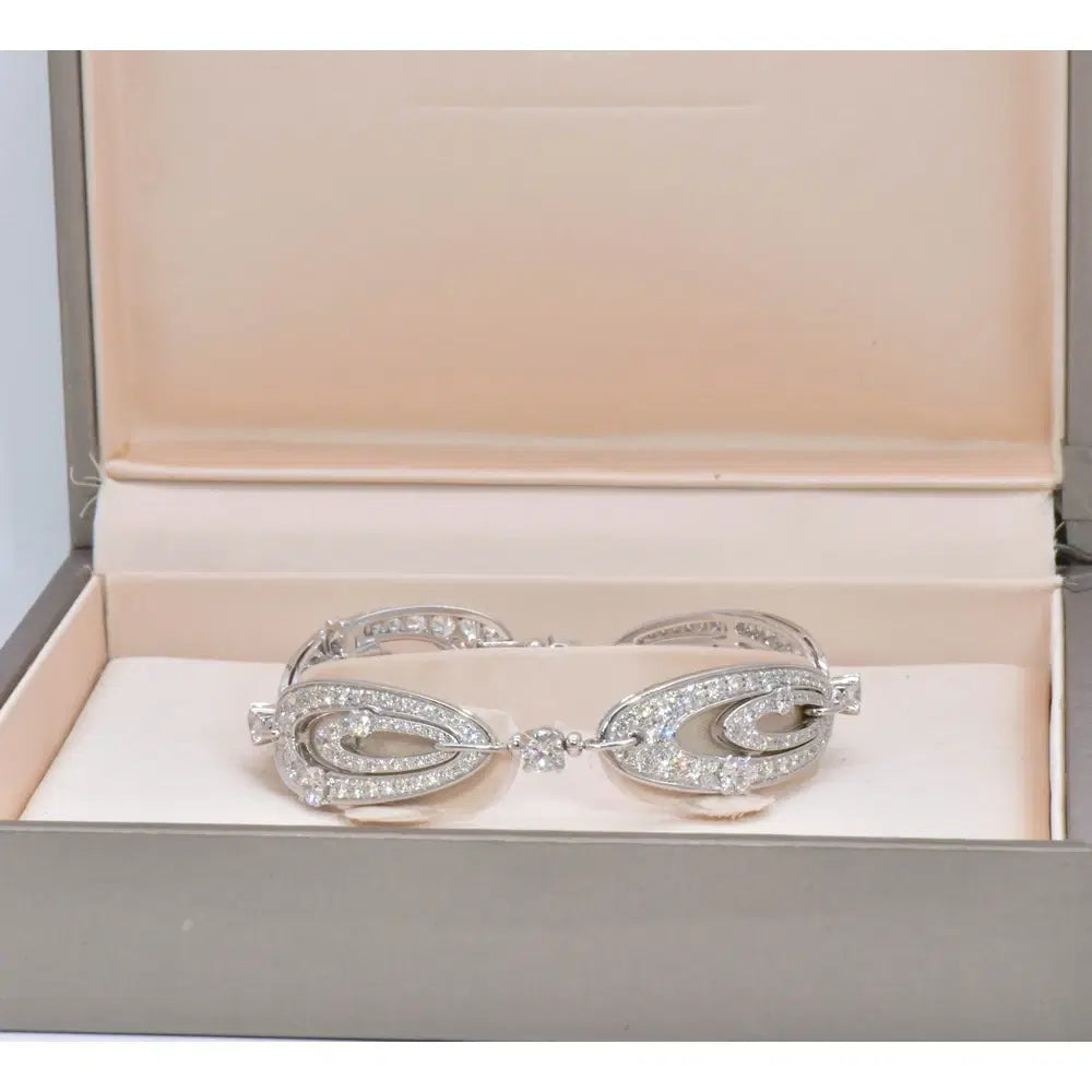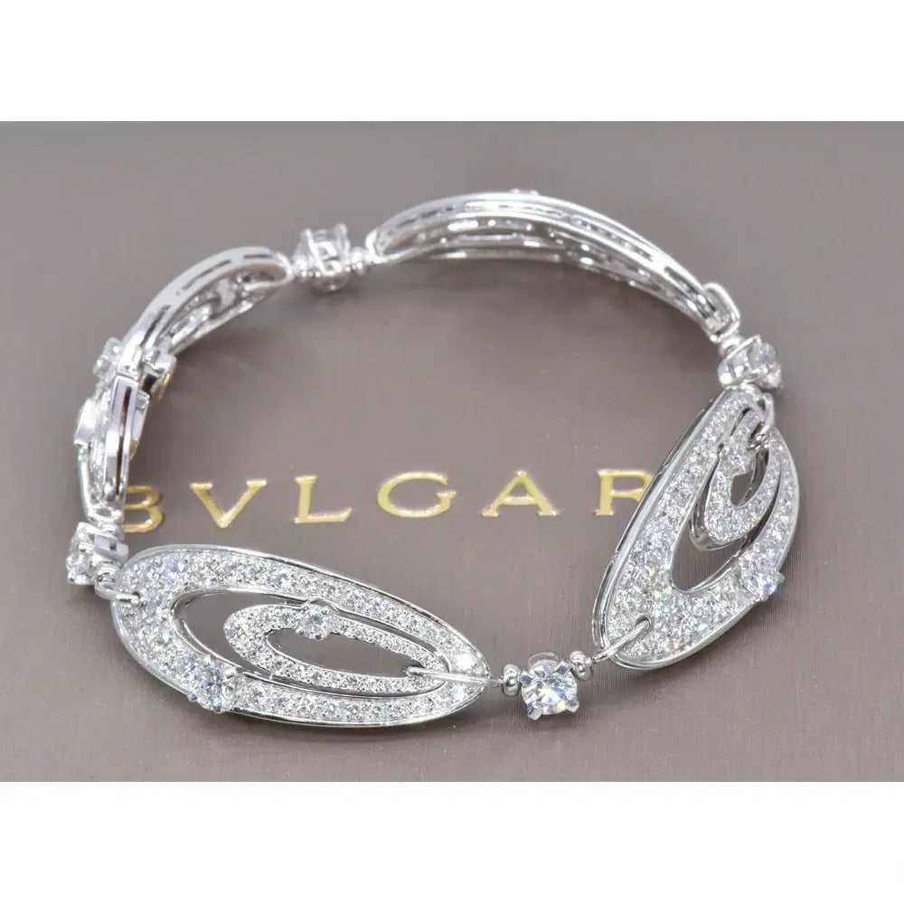 This BVLGARI ‘Elisia’ 7ct Diamond and 18k White Gold Bracelet is part of the ‘Elisia’ collection is inspired by Bvlgari’s jewellery design of the 1960s and 1970s and 1980s. The ‘Elisia’ design is timeless and characterised by art deco style elliptical gold links paved with diamonds. The design is said to be favoured by French actress Catherine Deveuve. This collection is no longer in production.