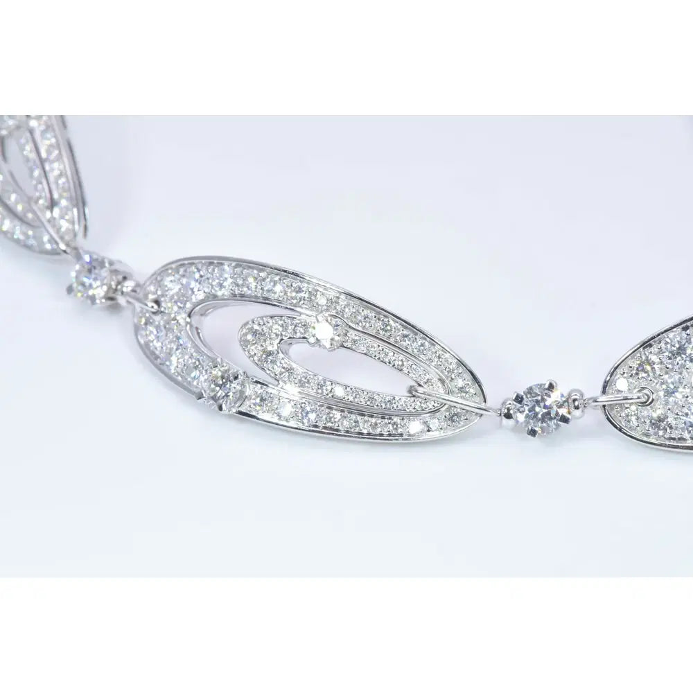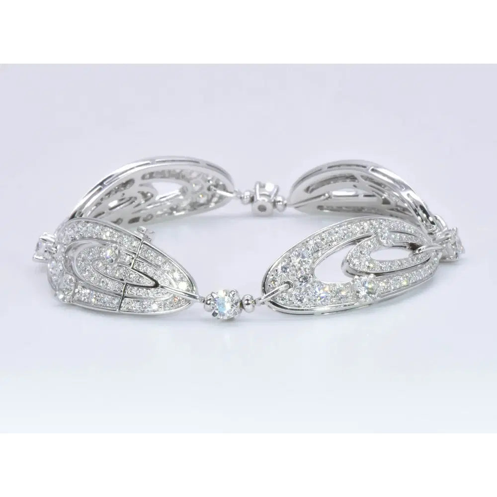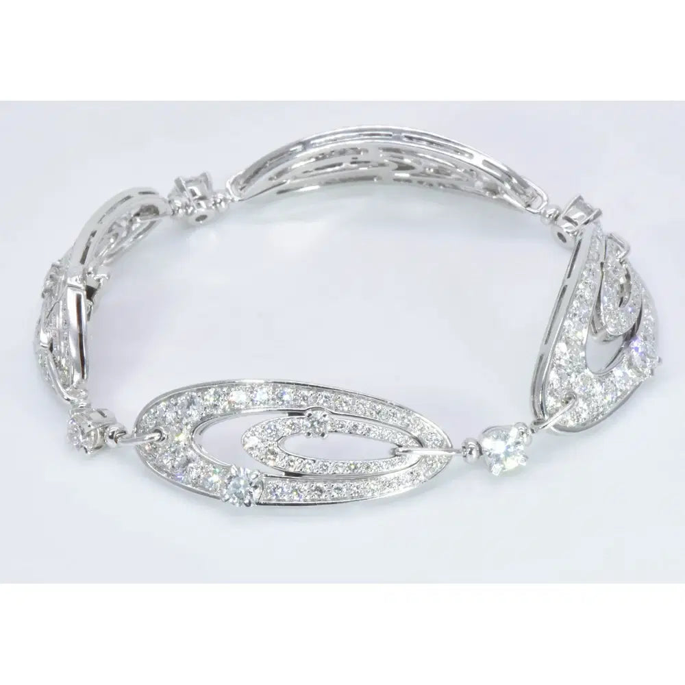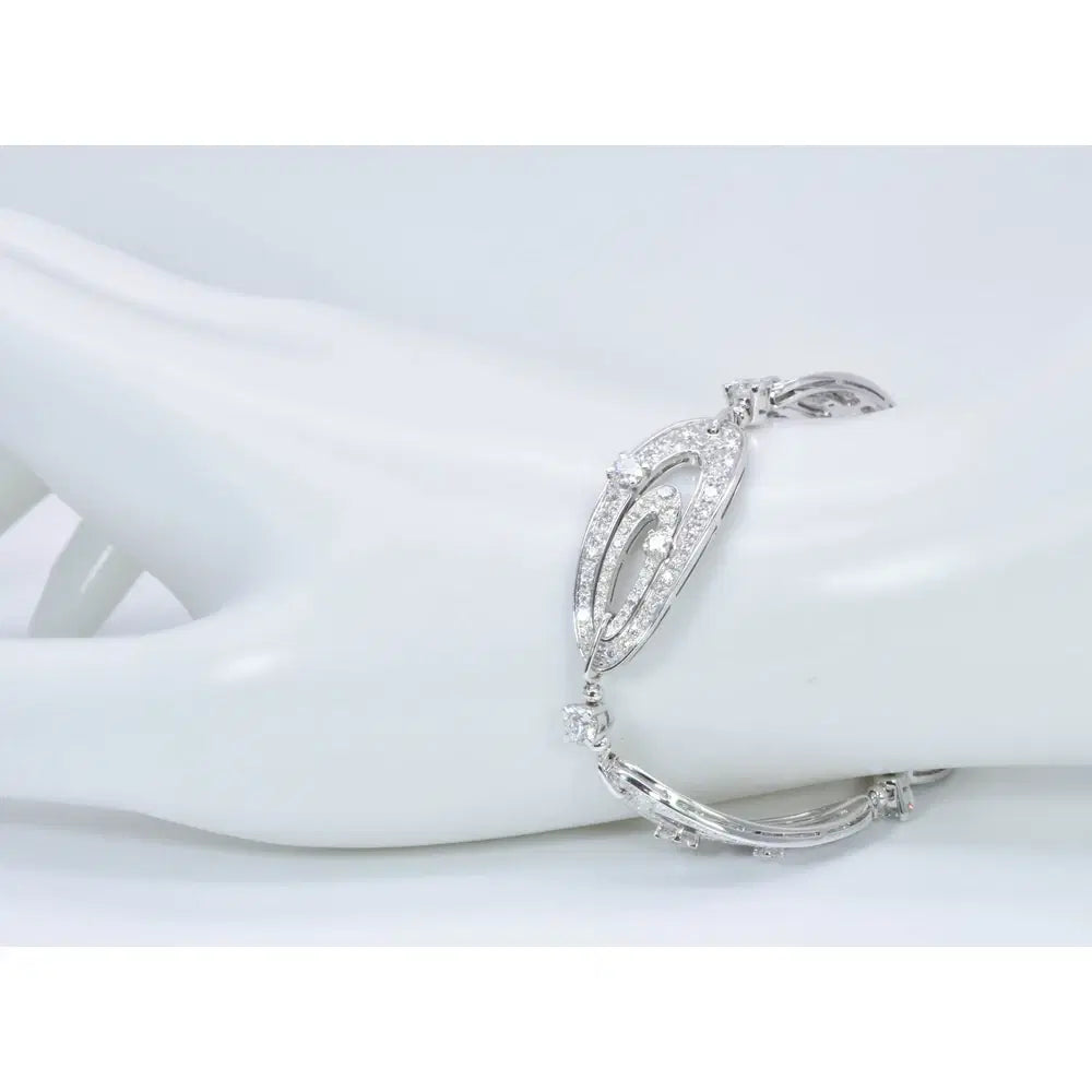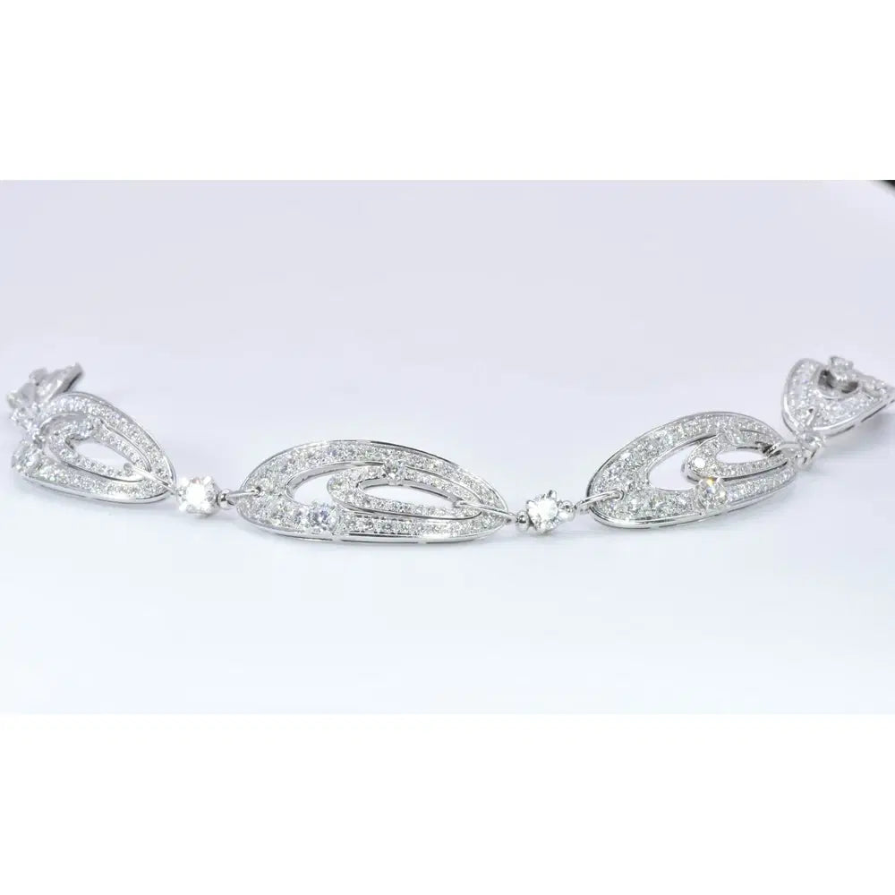 This BVLGARI ‘Elisia’ 7ct Diamond and 18k White Gold Bracelet is part of the ‘Elisia’ collection is inspired by Bvlgari’s jewellery design of the 1960s and 1970s and 1980s. The ‘Elisia’ design is timeless and characterised by art deco style elliptical gold links paved with diamonds. The design is said to be favoured by French actress Catherine Deveuve. This collection is no longer in production.