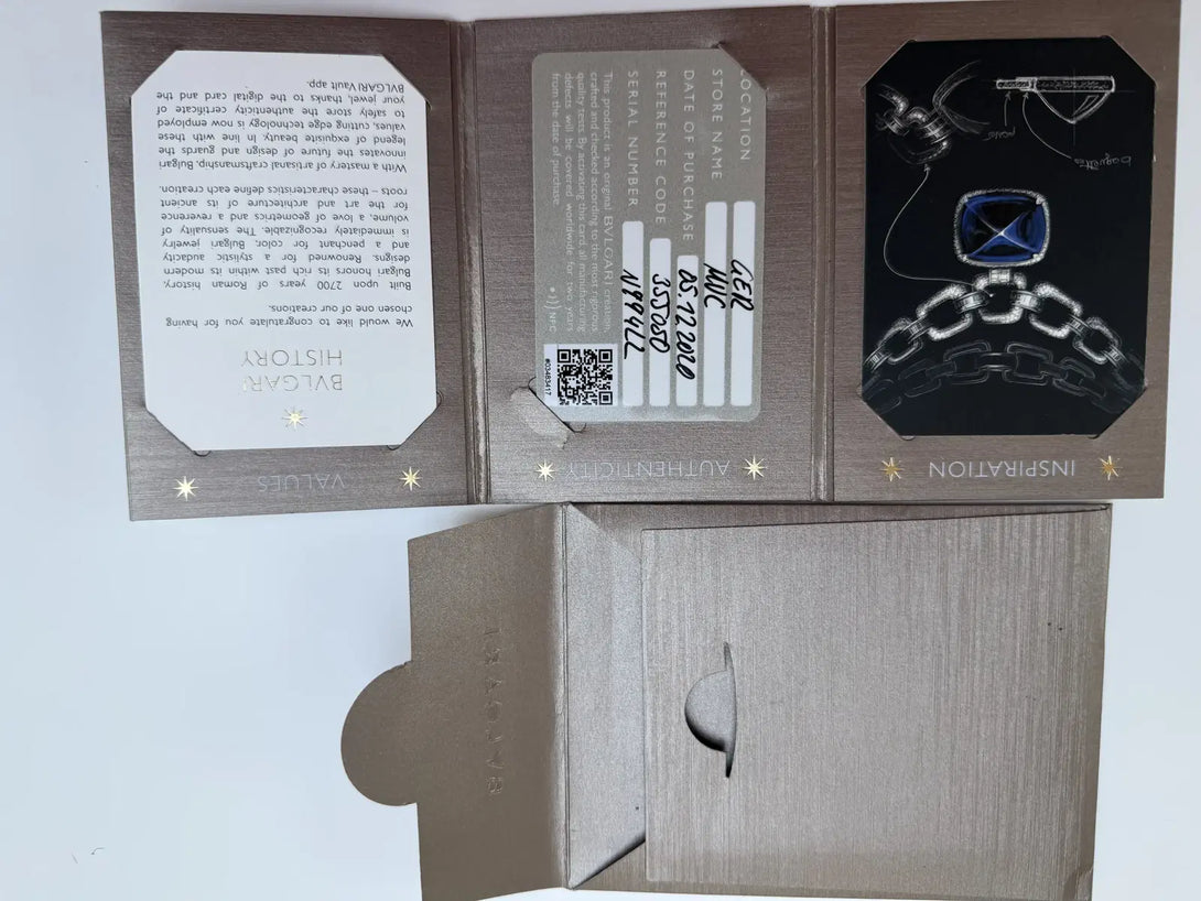 | Packaging | Auriks box | Paperwork | BVLGARI certificate |