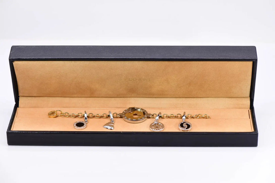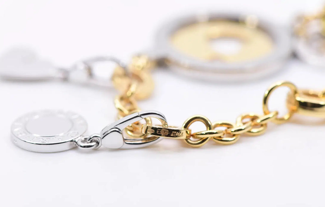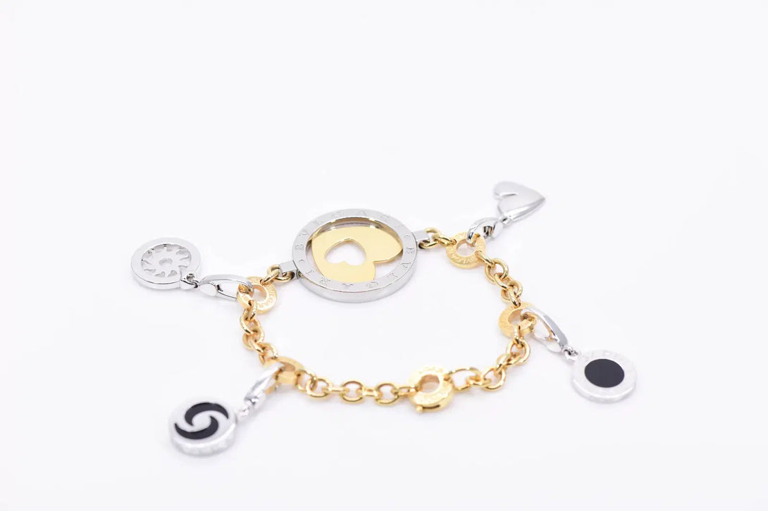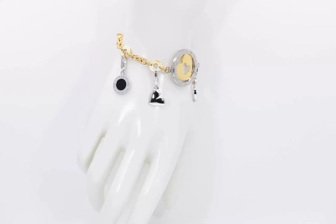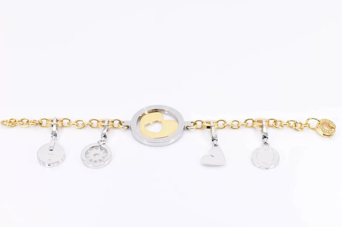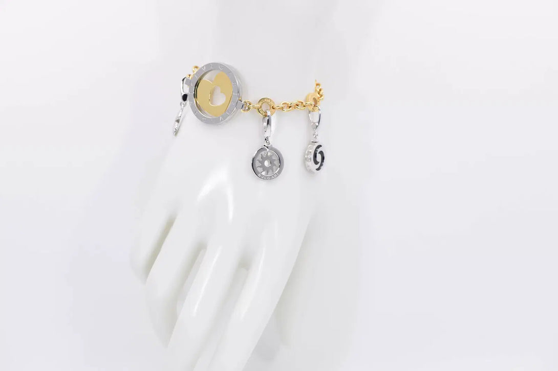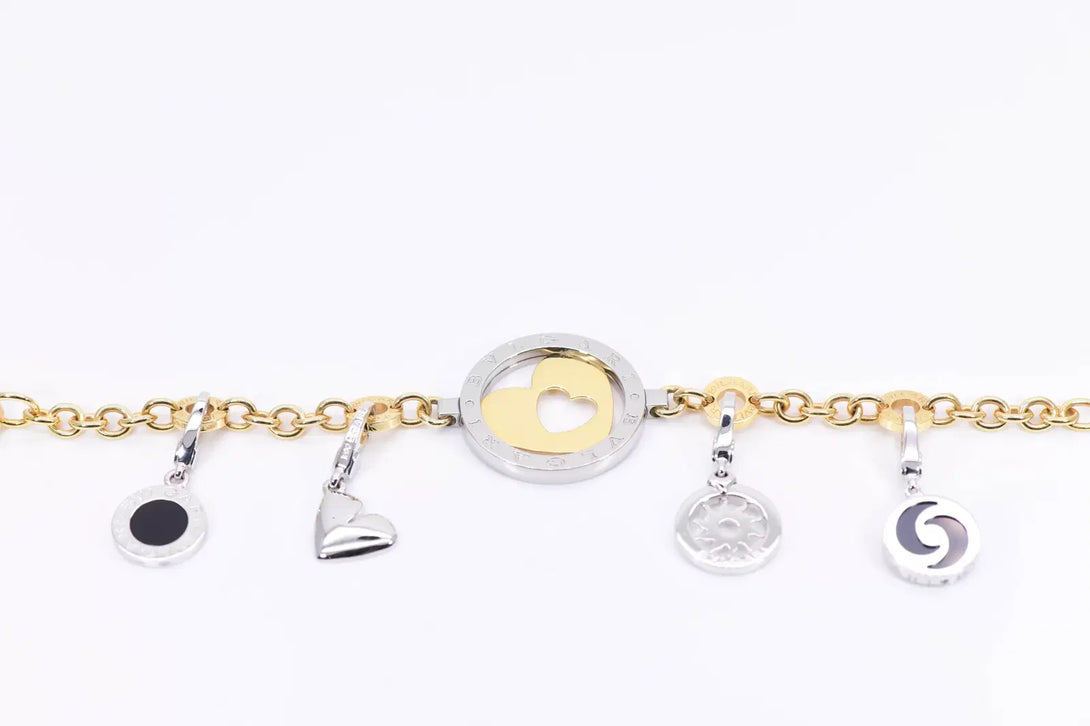 The “Bvlgari ‘Tonto’ Bi-metal Charm Bracelet” is part of the Bulgari Tonto collection which is not in production any longer. However, the Bulgari charm bracelets remain one of the most sought after and rare pieces of jewellery.