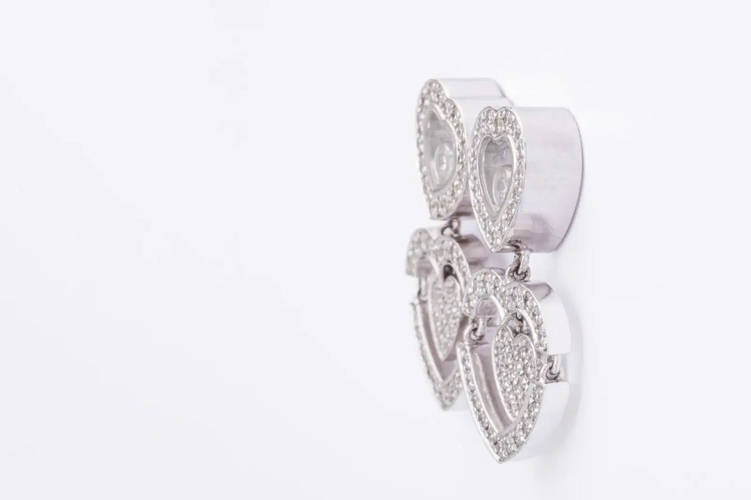 The Happy Amore Earrings embody Chopard’s innovative spirit and dedication to creating timeless jewelry pieces. By integrating moving diamonds into their designs, Chopard offers wearers a unique interplay of light and movement, making each piece captivating and dynamic. The heart motif adds a layer of romantic symbolism, making these earrings a cherished accessory for those who appreciate both luxury and meaningful design.