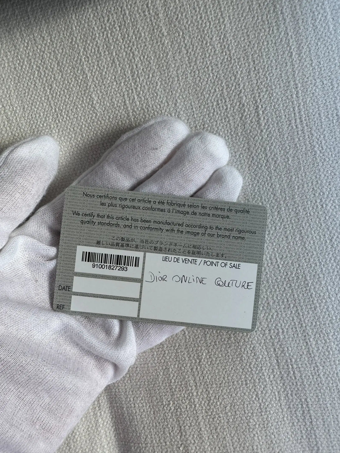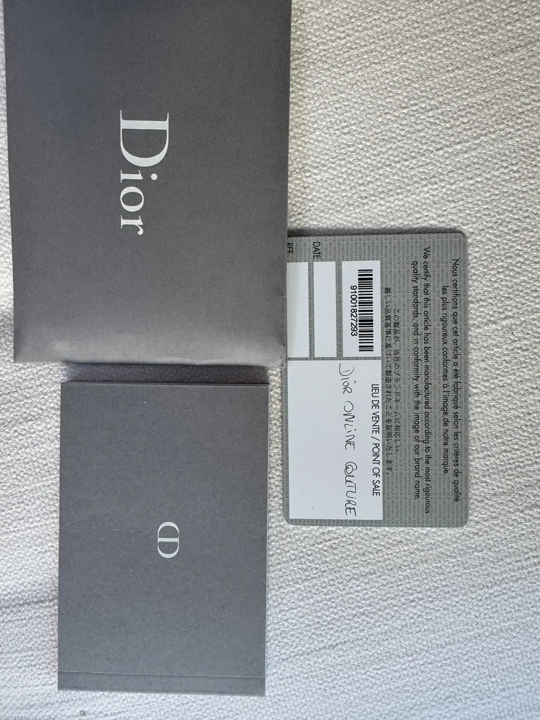 - Paperworks: Dior authenticity card