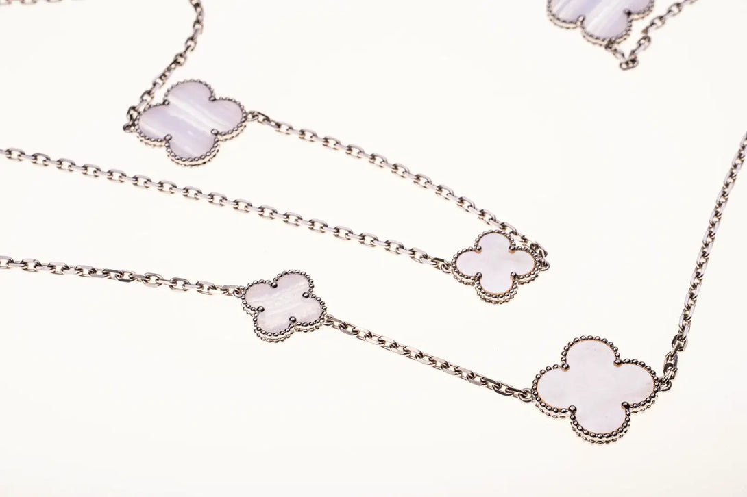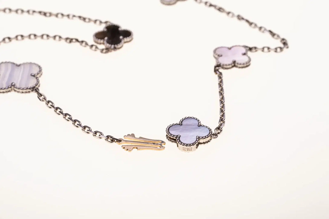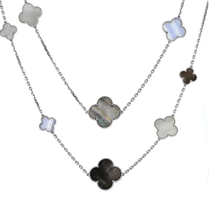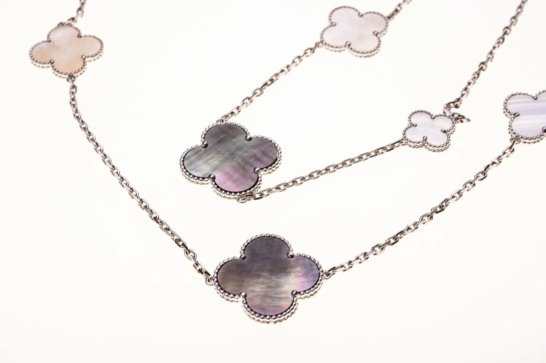 Van Cleef & Arpels Magic Alhambra Long Necklace, 16 Motifs 18k White Gold Mother of Pearl Specification: